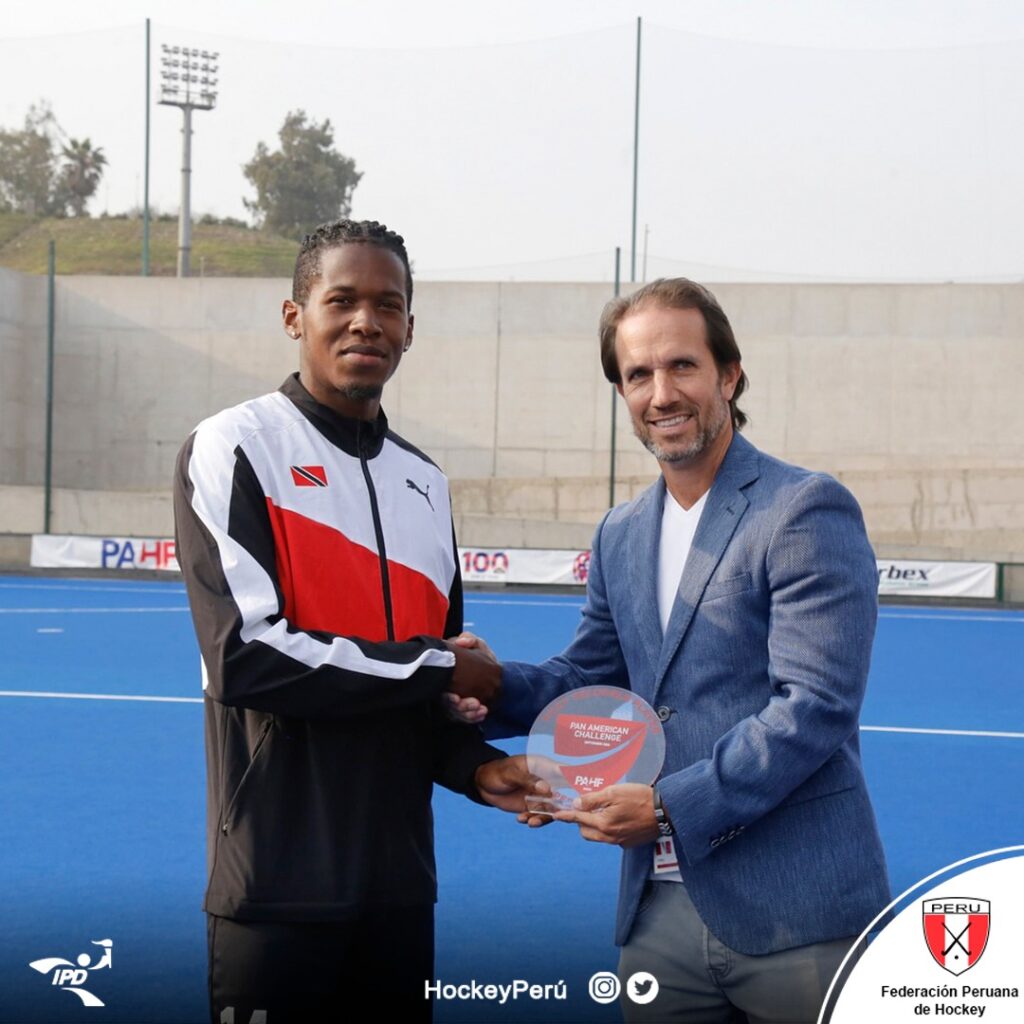 Villa María del Triunfo, 18 de setiembre. La final del Pan American Challenge, entre Perú y Trinidad y Tobago, fue el último partido como árbitro internacional del brasileño Oliver Hock. Él había anunciado su retiro del arbitraje internacional. Tras el compromiso recibió un recuerdo especial de la Federación Panamericana de Hockey y, también, un juego